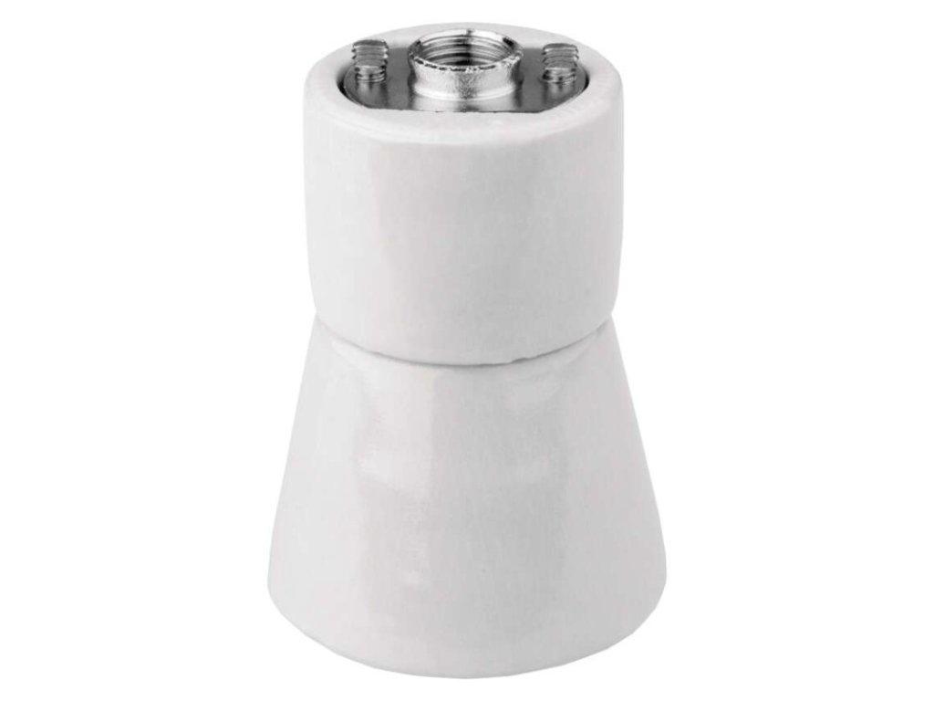 barva: bílá|jmenovité napětí: 250 V~|jmenovitý proud: 4 A|materiál: keramika|prodejní obal: 10 ks, volné|produkt: objímka se závitovým vstupním otvorem (reaktoplast, keramika)|upevnění: závitový vstupní otvor M10 × 1|určeno pro závit: E27Doplňkové parametry