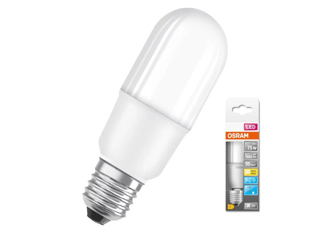 (BAL:1/6ks) LED žárovka OSRAM LED STAR, tvar CLASSIC STICK 75 , 9W (náhrada za 75W), E27, 220-240V, teplé bílé světlo 2700K, svítivost: 1050lm, úhel vyzařování 200°, E,Svítí kolem dokola 360°Rozměr: 116x38mm. Jmenovitá životnost 15000 h. Počet spínacích cyklů 100000. Lze použít v teplotách od -40° do +40°Doplňkové parametry