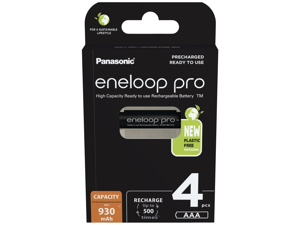 (BAL:4/80ks) Cena je uvedena za jeden kus. V balení na blistru 4ks.Dobíjecí baterie Panasonic Eneloop PRO EKO aAA jsou ideální pro napájení energeticky náročných zařízení, jako jsou blesky fotoaparátů, bezdrátové klávesnice a myši, herní ovladače, rádiem ovládané hračky a různé domácí spotřebiče.Technická specifikace Panasonic Eneloop PRO EKO AAANikl-metalhydridová baterieMinimální kapacita: 930 mAhNapětí: 1,2 VPrůměr: 10,5 mmUchovává 85 % energie 12 měsíců po nabitíFunguje při nízkých teplotách až do -20 °CBalení: 4 ksDoplňkové parametry
