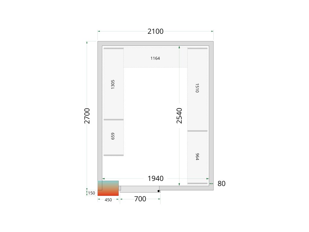| Vnější rozměry (ŠxHxV): | 2100 x 2700 x 2200 |