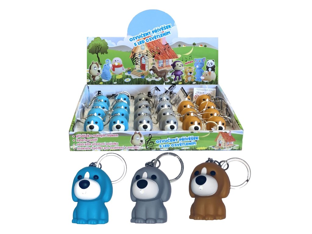 (BAL:1/24)Ozvučený přívěšek s LED osvětlením.Přívěšek s reálným zvukem.Ovládání: tlačítko pro osvětlení i melodii.Motiv: design pro děti.Baterie součástí.Cena za 1ks.Doplňkové parametry