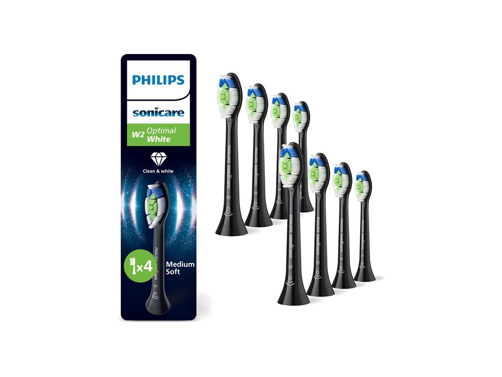 8x Náhradní hlavice Optimal White pro zubní kartáček Philips Sonicare, bělejší zuby, hloubkové čištění, sonický stíravý pohyb, párování režimů BrushSync, kompatibilní s modely Philips Sonicare, barva černáDoplňkové parametry