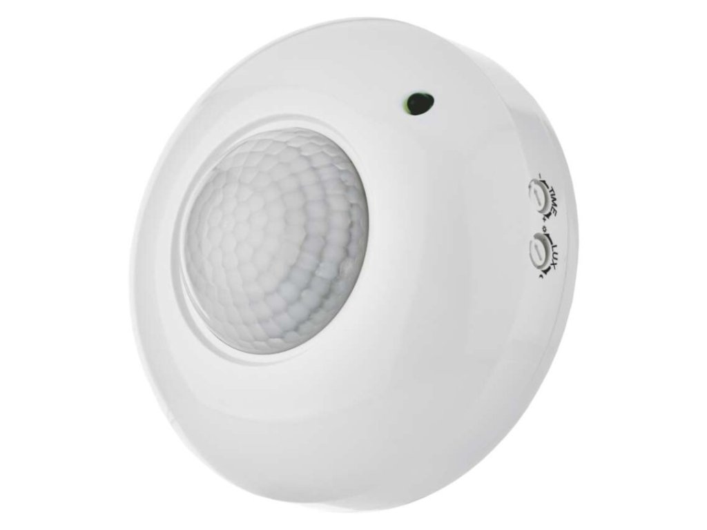 barva: bílá|citlivost: <3 Lux|detekční dosah: 6 m|detekční úhel: 360°|doba sepnutí: min. 10 sekund – max. 7 minut|krytí: IP20|max. zátěž kapacitní: 300 W|max. záťěž odporová: 1200 W|napájení: 230 V~/50 Hz|prodejní obal: 1 ks, krabička|rozměr: 115 × 115 × 55 mm|typ senzoru: PIRDoplňkové parametry