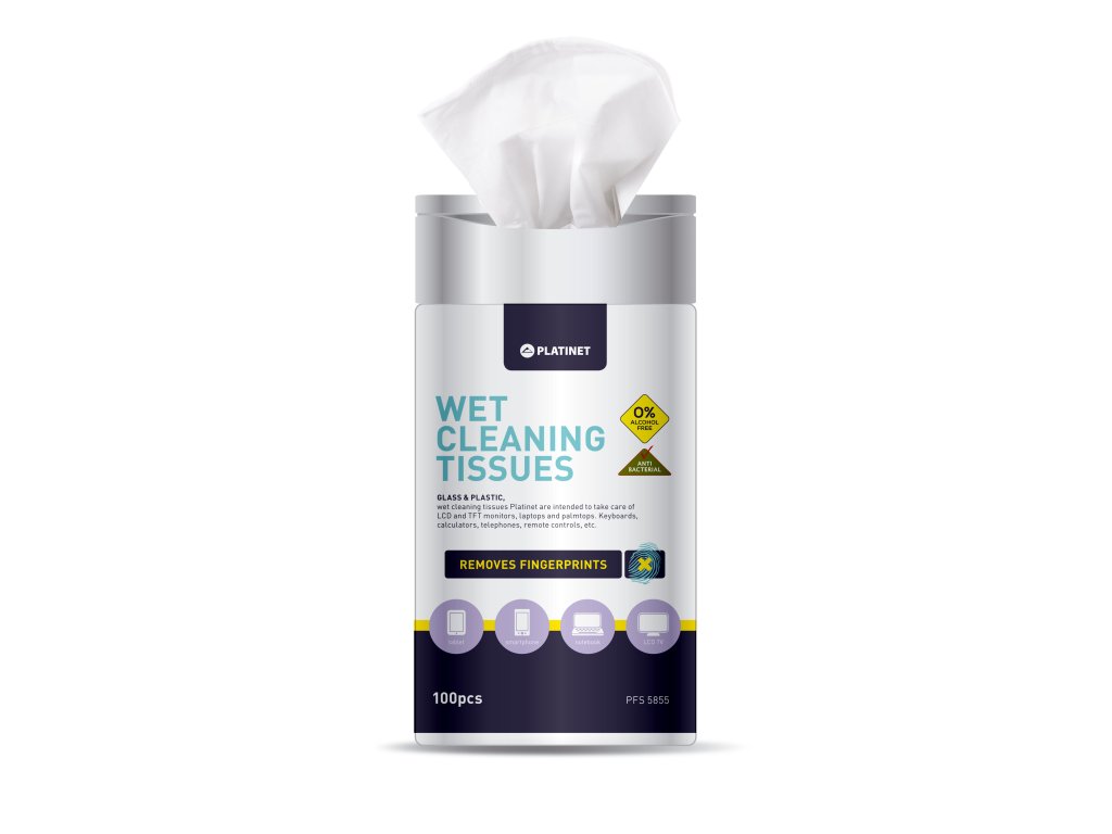UNIVERZÁLNÍ vlhčené čistící ubrousky jsou určeny pro péči o LED a LCD displeje, TFT monitory, notebooky, klávesnice a další skleněné a plastové prvky elektronických zařízení.Rozměr: 20x13cm Působí antistaticky. Kapalina neobsahuje alkohol (nehořlavý). Zbůsob použití: Víčkem protáhnout z role prostřední kapesníček. Vlhký monitor leštit jiným suchým, měkkým ubrouskem.Trvanlivost: neotevřené vydrží ve stejné kvalitě asi 30 měsíců. Obsah: 100ks vlhčených ubrousků.Doplňkové parametry