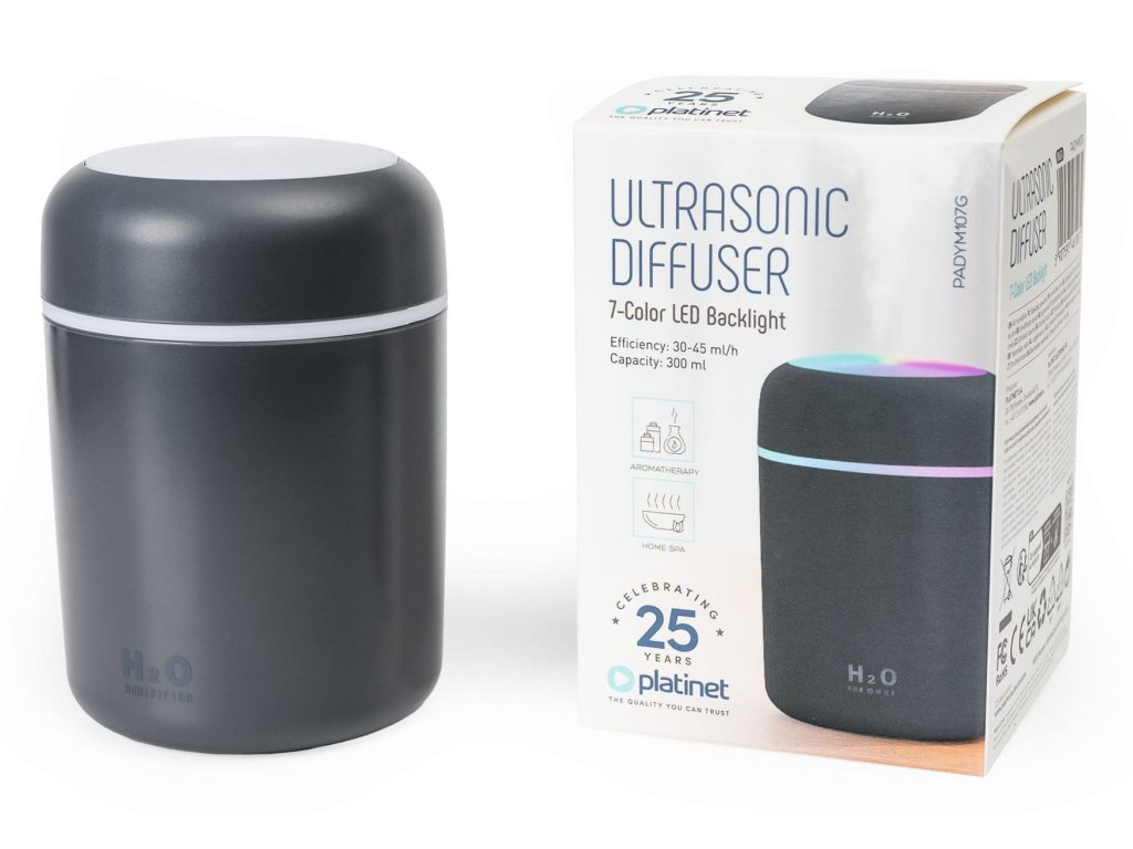 Platinet PADYM107G Ultrazvukový zvlhčovač a aroma difuzér 300ml s RGB LED šedá