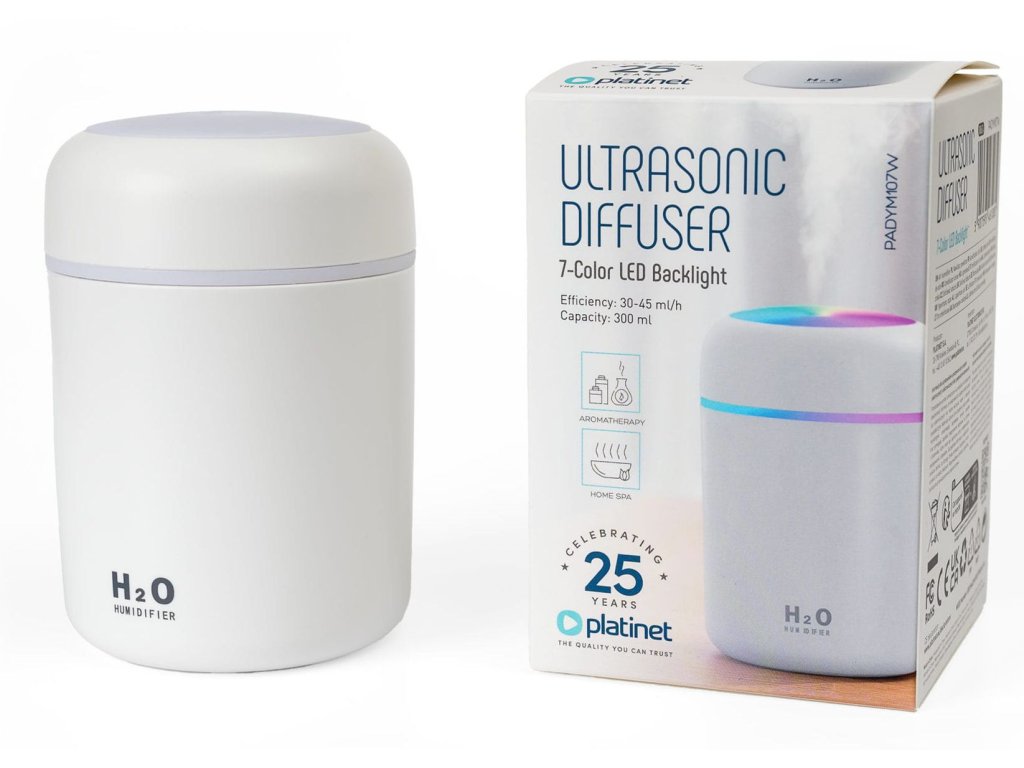 Platinet PADYM107W Ultrazvukový zvlhčovač a aroma difuzér 300ml s RGB LED bílá