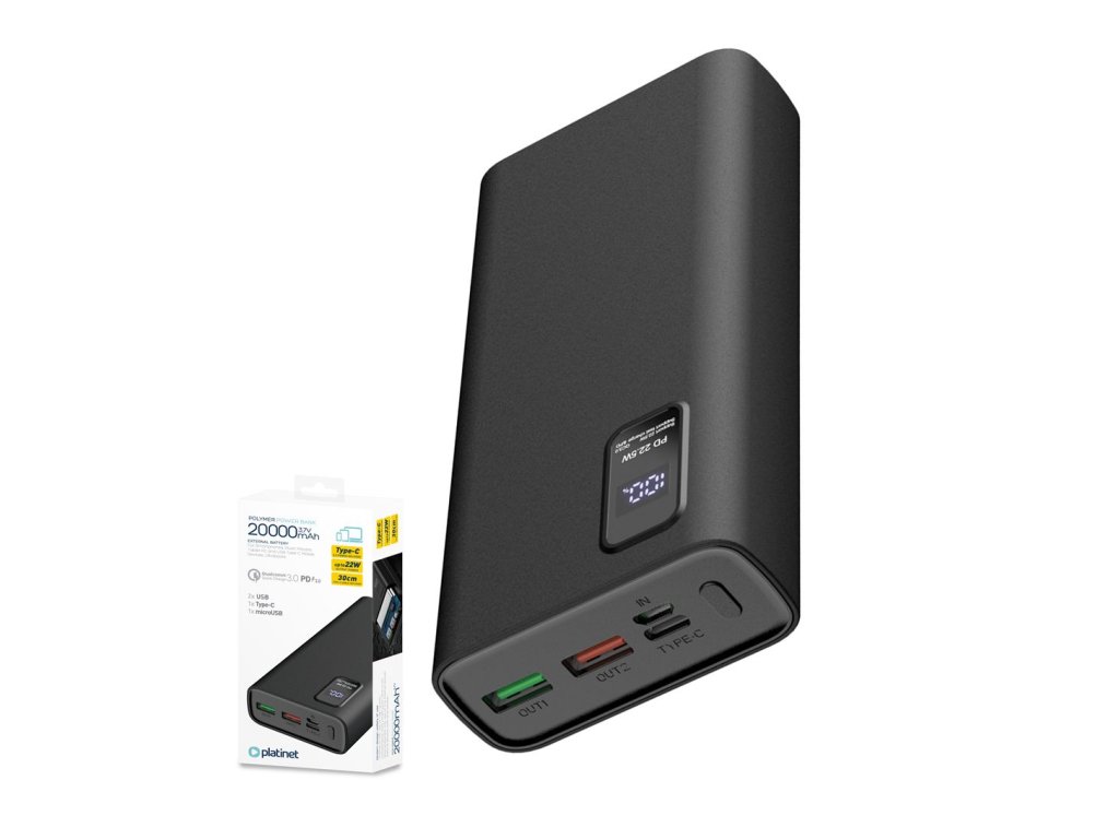 Platinet Power Bank PMPB20WQC727B 20000mAh PD3.0 QC3.0 display černá