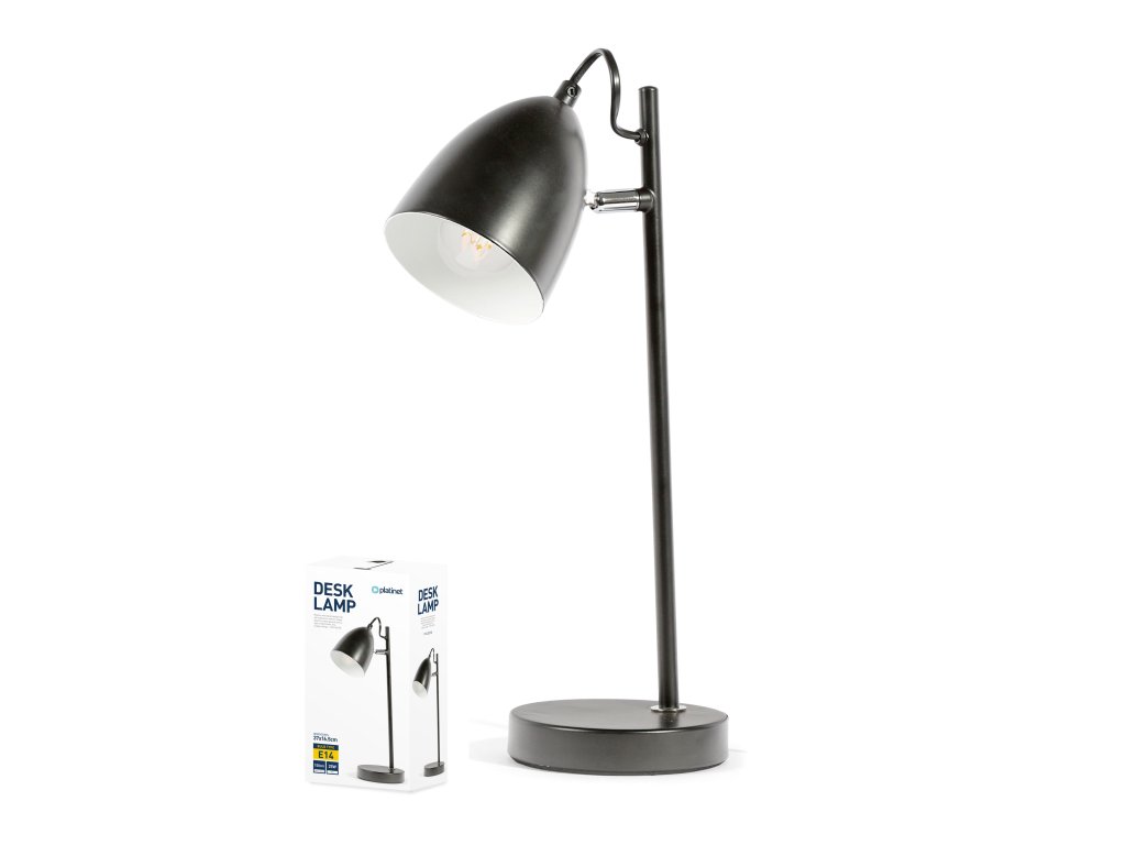 (BAL:1/4ks) Stolní lampa. Konstrukce v kovovém provedení. Provoz na žárovku se závitem 1 x E14. Ovládání ZAP/VYP na přívodním kabelu. Délka kabelu 1,5mStupeň krytí IP: IP20Žárovka E14 max. 25W nebo LED(žárovka není součástí)Rozměry: výška 37,5cm x 16,5Barva: ČERNÁ.Hmotnost: 665gDoplňkové parametry