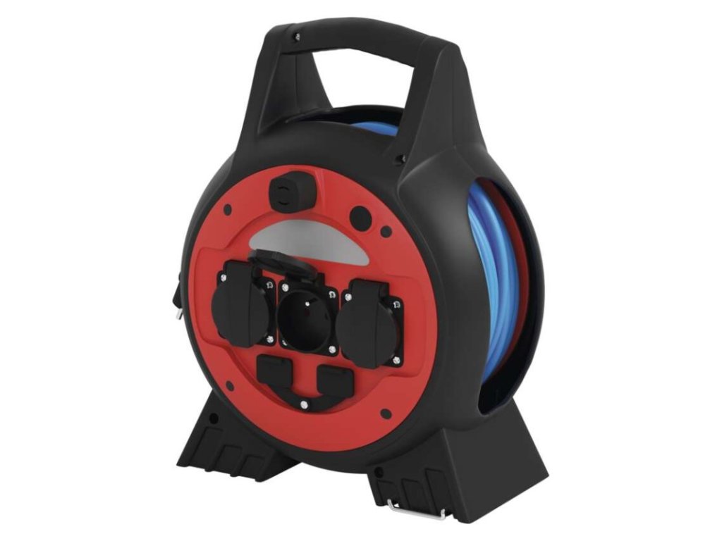 Počasí odolný prodluž. kabel na bubnu 20 m / 3 zásuvky / modrý / PVC / 230 V / 1,5 mm2