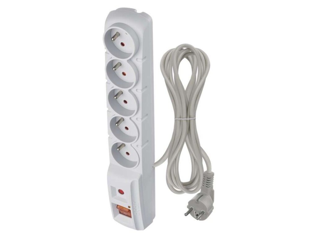Přepěťová ochrana – 5 zásuvek, 3m, šedá