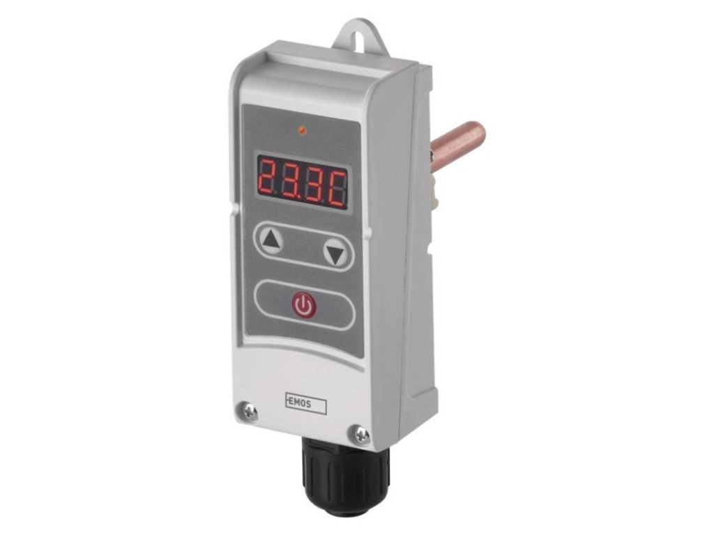 barva: bílá|délka kapilárového čidla: neuvádí se|dosah ve volném prostoru: neuvádí se|druh regulace: vytápěcí a chladící systém|funkce ON/OFF: ano|funkce prázdniny: ne|funkce Set-back: neuvádí se|kalibrace teploty: ne|měření teploty: 5 °C až 80 °C, rozlišení 0,1 °C|možnost propojení s dalšími detektory: neuvádí se|napájení: 230 V AC|napájení brány: neuvádí se|napájení přijímače: neuvádí se|napájení vysílače: neuvádí se|nastavení teploty: 5 °C až 80 °C, po 0,1 °C|nastavitelný rozptyl teploty: 0,1 °C až 15 °C, po 0,1 °C|ochrana proti zamrznutí: ne|počet programů: neuvádí se|podsvícený displej: ano|pracovní frekvence: neuvádí se|prodejní obal: 1 ks, krabička|protokol: –|rozměr: 45 × 36 × 140 mm, jímka: 58 mm, Ø 8 mm, závit 1/2"|rozměr brány: neuvádí se|rozměr přijímače: neuvádí se|rozměr vysílače: neuvádí se|součást balení: neuvádí se|spínaná zátěž: 5 A odporově, 1,5 A induktivně|spínání: napěťové 230 V AC, 50 Hz|typ nastavení teploty: manuálně|typ ovládání: manuální termostat|typ termostatu: drátový příložnýDoplňkové parametry