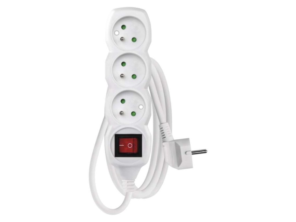 barva: bílá|délka: 1,2 m|dětské clonky: ano|krytí: IP20|materiál zásuvky a vidlice: plast|max. zátěž: 3 680 W|napětí: 250 V~|počet zásuvek: 3|prodejní obal: 1 ks, závěs|proud: 16 A max.|průřez vodiče: 1,0 mm²|typ izolace: PVC|USB výstup: ne|vodič: H05VV-F3G|vypínač: anoDoplňkové parametry