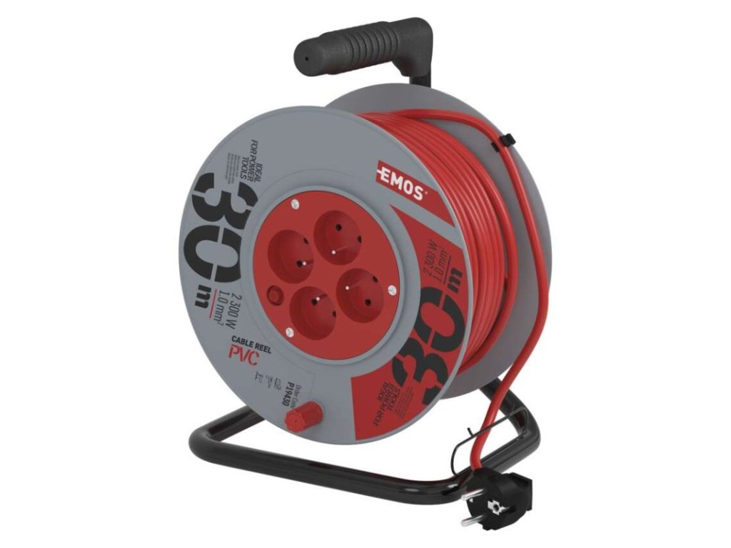 barva kabelu: červená|další funkce: vodící oko, brzda cívky|délka: 30 m|dětské clonky: ne|hmotnost: neuvádí se|krytí: IP20|max. zatížení navinutého: 4,8 A max./1 100 W|max. zatížení rozvinutého: 10 A max./2 300 W|napětí: 230 V~|počet zásuvek: 4|prodejní obal: 1 ks, krabice|produkt: buben s pohyblivým středem|proud: 10 A|průřez vodiče: 1,0 mm²|rozměr: 240 mm|tepelná pojistka: ano|typ izolace: PVC|vodič: H05VV-F3G|záruční doba: 2 rokyDoplňkové parametry