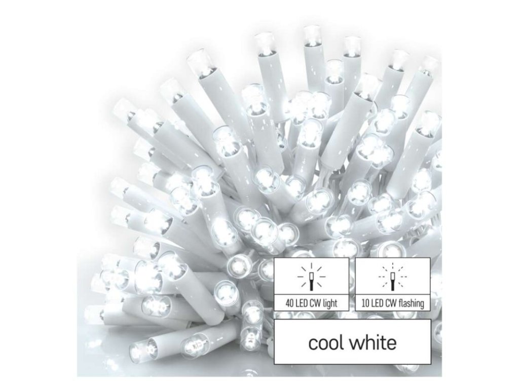 barva drátu: bílá|barva světla: studená bílá|časovač: neuvádí se|dálkový ovladač: ne|délka přívodu: 10 cm|funkce: svítí/bliká|krytí: IP44|LED mezera: 10 cm|materiál: guma|možnost propojení: ano|počet LED: 50|použití: venkovní i vnitřní|příkon: max. 4 W|prodejní obal: 1 ks, krabice|produkt: krápníky|pro výšku stromu: neuvádí se|rozměr: 3 × 0,4 m|tvar: klasický|typ napájení: síťový adaptér (není součástí balení)|velikost LED: 7 mm|vstupní napětí: 30 V DC|výstupní napětí: neuvádí se|záruční doba: 3 roky|životnost: 10 000 hodinDoplňkové parametry