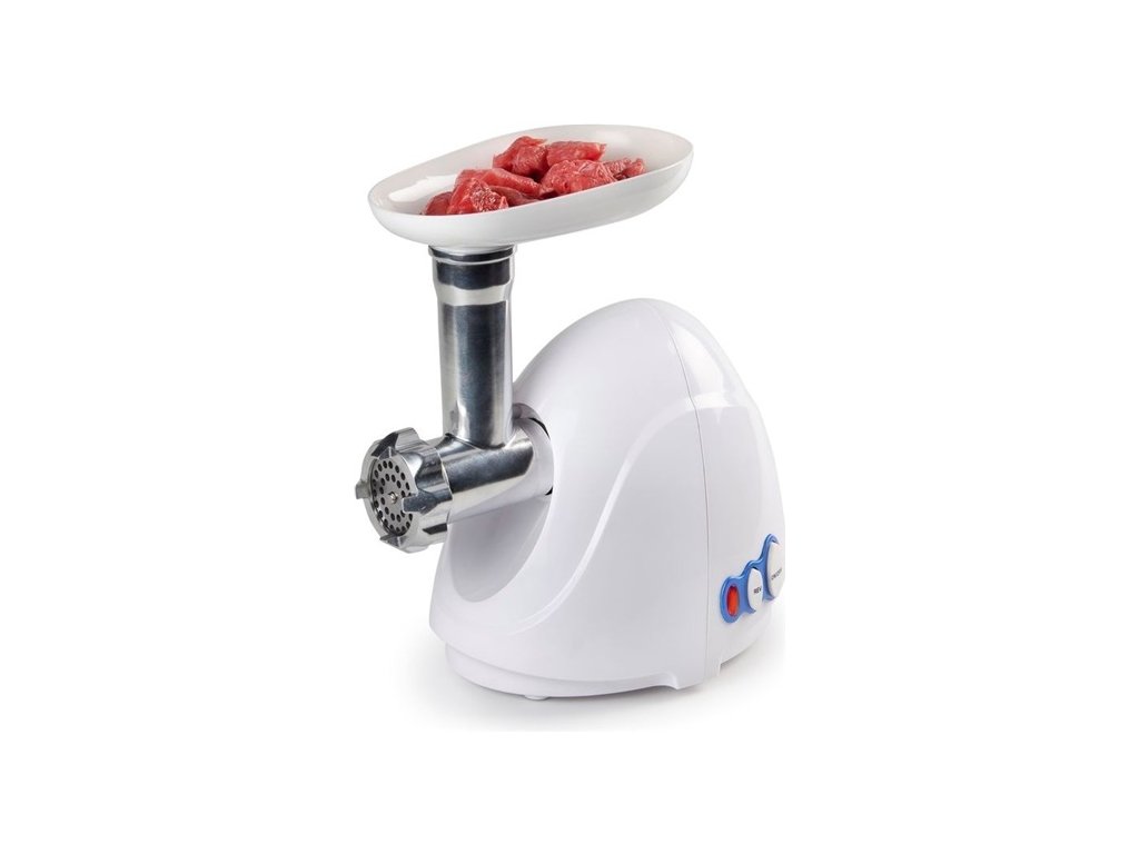 Masivní kovový šnek i pouzdro, 800W, Možnost volby zpětného chodu, Bezpečnostní aretace šnekového pouzdra k přístroji, V příslušenství jsou 3 "šajby" - síta pro různou hrubost mletí, Hrubá 8mm, Střední 4mm a Jemná 2mm + Náhradní náhonová šneková spojka + Narážečka na klobásy, bíláDoplňkové parametry