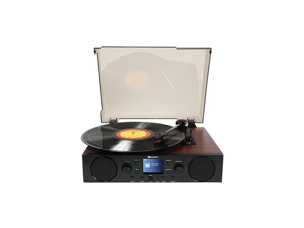 dřevo, bluetooth, DAB+ a FM rádio, gramofon 33,45,78 ot./min., autostop, vstupy: USB, SD karta, AUX 3,5mm jack, výstupy: Line RCA, USB s možností přímého kódování do MP3, 2,4" TFT barevný displej, dálkové ovládání, výkon 2x1,5 W RMS, 24W PMPODoplňkové parametry