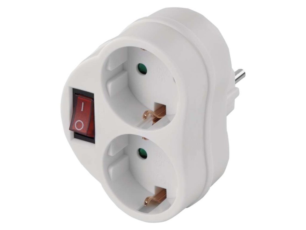 barva: bílá|dálkový ovladač: ne|dětské clonky: ano|dosah signálu: neuvádí se|easy learning: ne|krytí: IP20|materiál: plast|max. zátěž: 3 680 W|možnost ovládání: ne|napětí/proud: 250 V~/16 A max.|počet pólů: neuvádí se|počet zásuvek: 2× 2P + PE|pozice ochranného kontaktu: neuvádí se|přenosoná frekvence: ne|prodejní obal: 1 ks, závěs|produkt: rozbočovací zásuvka 2× s vypínačem|typ: SCHUKO|venkovní použití: ne|vypínač: anoDoplňkové parametry