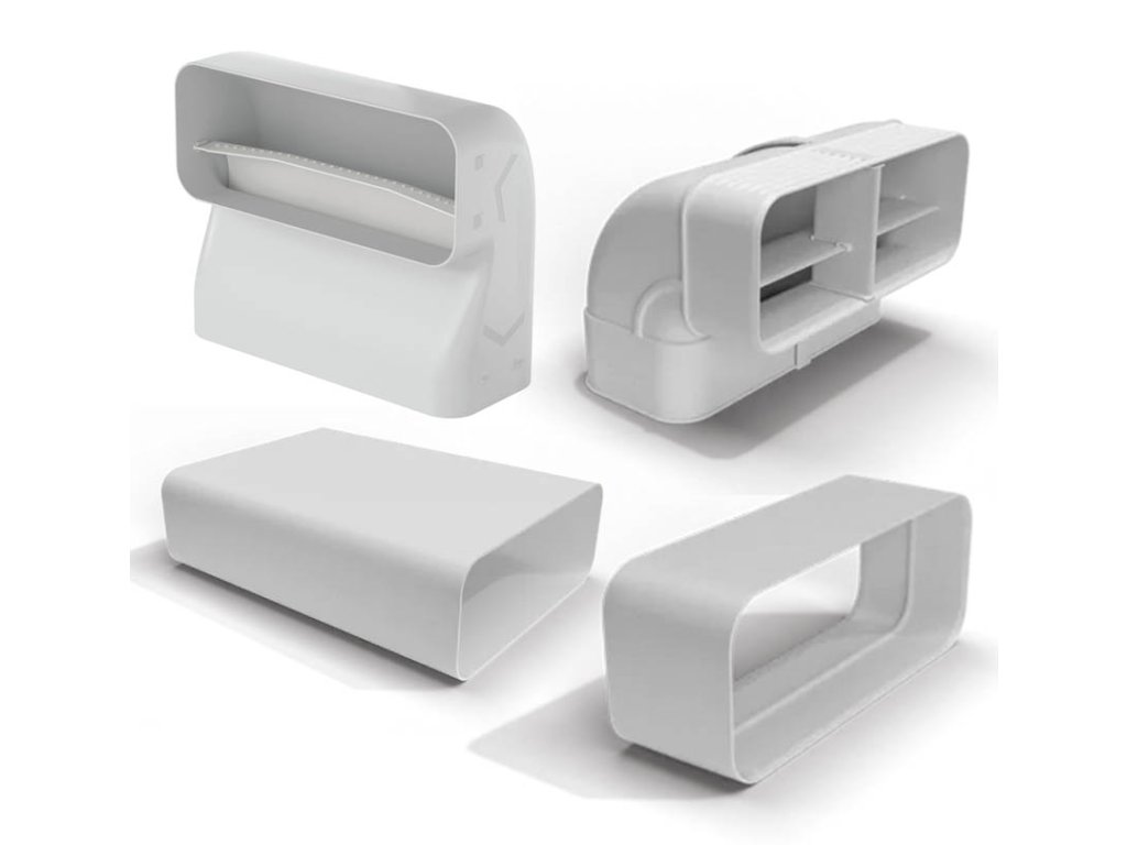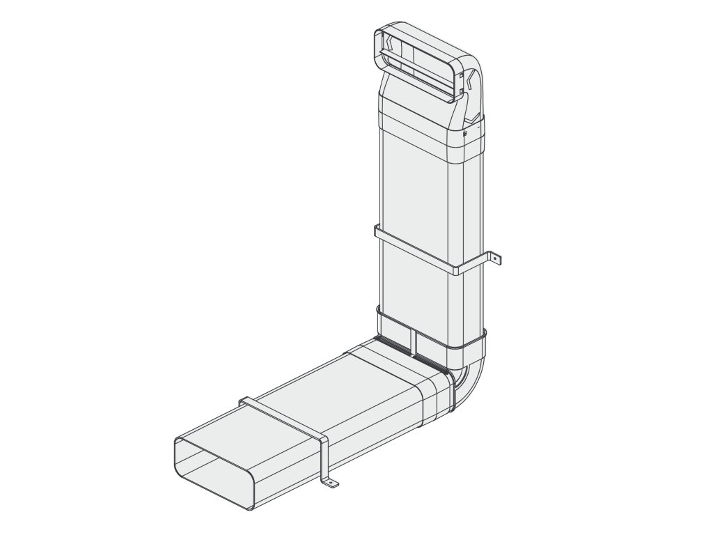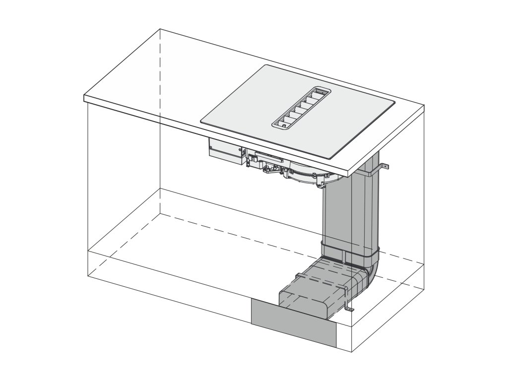 Kompletní sada potrubí k indukčním deskám s integrovanou digestoří typu flow-in, umožňující odvod přefiltrovaného vzduchu zadní stranou skříňky pod skříňku s výdechem dopředu.Doplňkové parametry