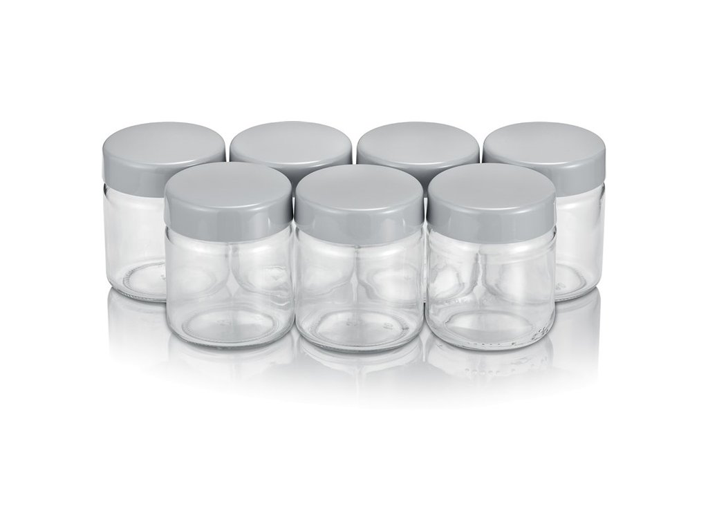 náhradní sklenice,7 skleněných nádob 150 ml s nepropustným víkem pro čerstvé skladování, ideální pro cestování nebo do práce, 100 % BPA - free pro zdravý požitek, vhodné pro jogurtovače SEVERIN: JG 3516 / JG 3518 / JG 3519 / JG 3520 / JG 3521 a JG 3525Doplňkové parametry