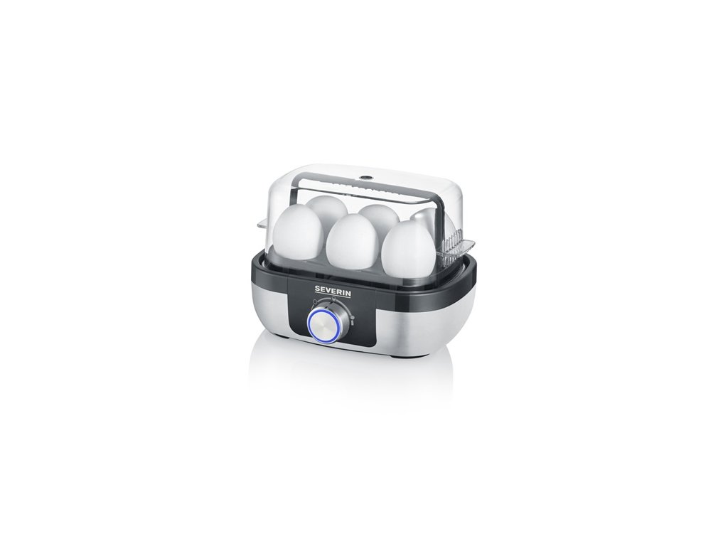 designový automatický vařič vajec, s přesnou kontrolou času vaření, příkon topného tělesa cca 420 W, ochrana proti přehřátí, ohřevná deska s nepřilnavým povrchem, odměrka s hrotem, mřížka na 1–6 ks vajec, výklopné transparentní víko, lze oddělit od spotřebiče – snadné čištění, elektronická kontrolaDoplňkové parametry