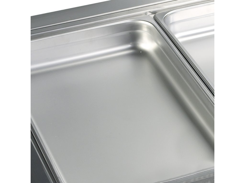 Řada CW /V stolních chladicích van nabízí bezpečný způsob prezentace chutných pokrmů například v bufetu. Lze je použít také pro chlazení lahví s nápoji. V je označení pro ventilované chlazení, které zajišťuje rovnoměrnější distribuci chladu ve vaně. Vany jsou vyrobeny z nerezové oceli SS304, díky které je údržba snadná. Vany CW jsou vhodné pro vestavění do vašeho pultu a jsou určeny pro standardní rozměry gastronádob GN1/1 x 150 mm (max), gastronádoby nejsou součástí.Doplňkové parametry