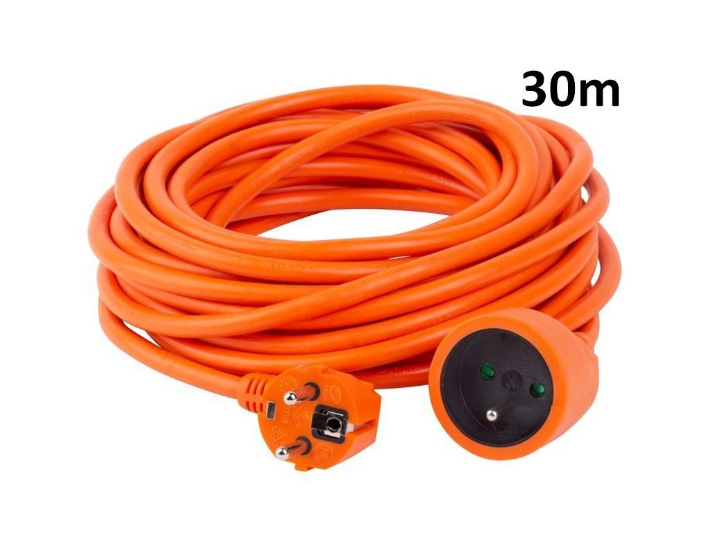 (BAL:1/5ks) Prodlužovací kabel o délce 30 metrů.Max. 16A / 3680W. Vodič DG-YFB01 3x1,5mm.IP20.Barva: oranžová. Balení: folie.Doplňkové parametry