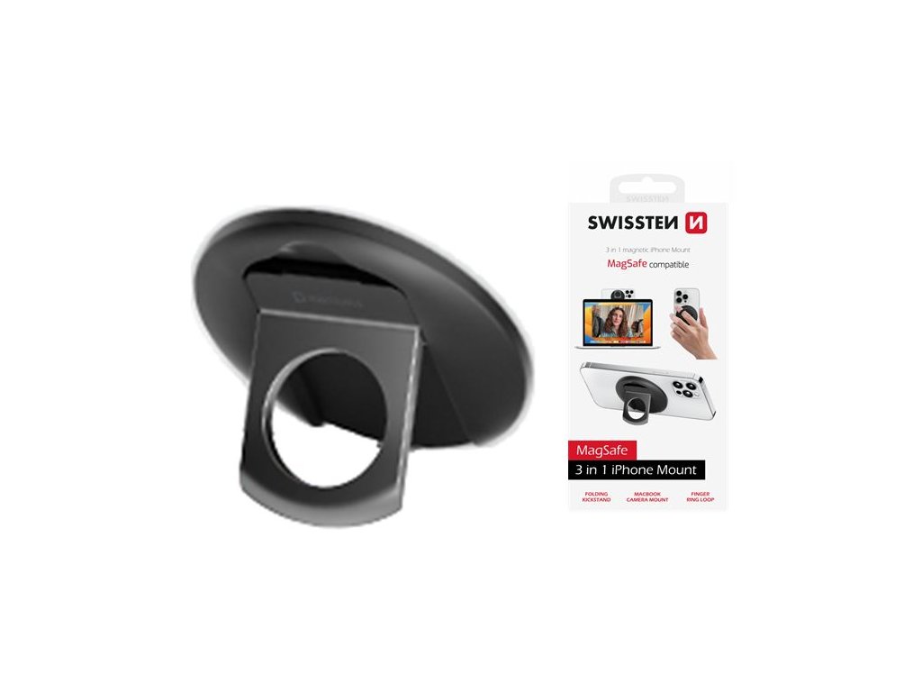 SWISSTEN 3v1 MagStick iPhone držák s kroužkem na prst, stojánek, uchycení na MacBook (MagSafe)