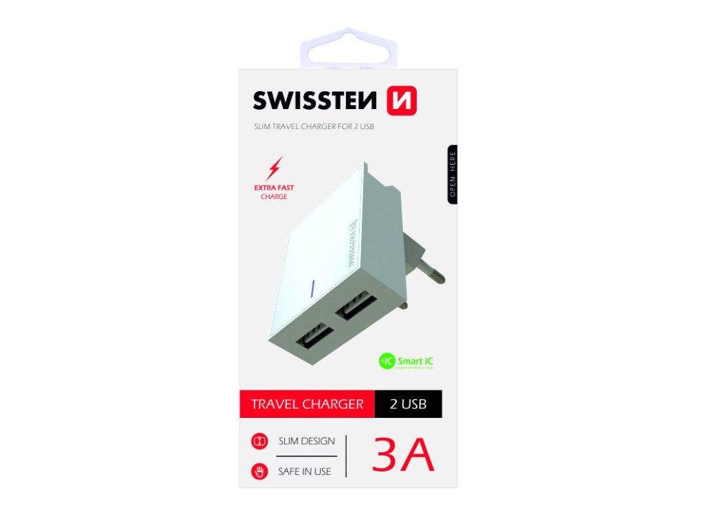 SWISSTEN adaptér 230V/3A 2xUSB BÍLÁ