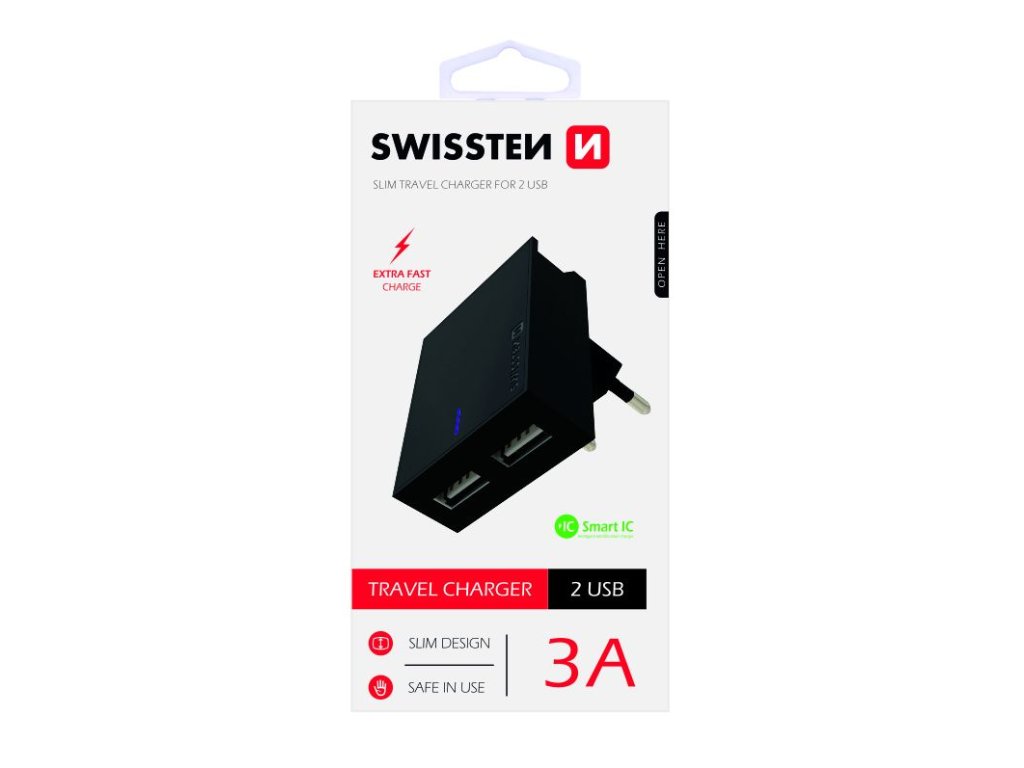 SWISSTEN adaptér 230V/3A 2xUSB ČERNÁ