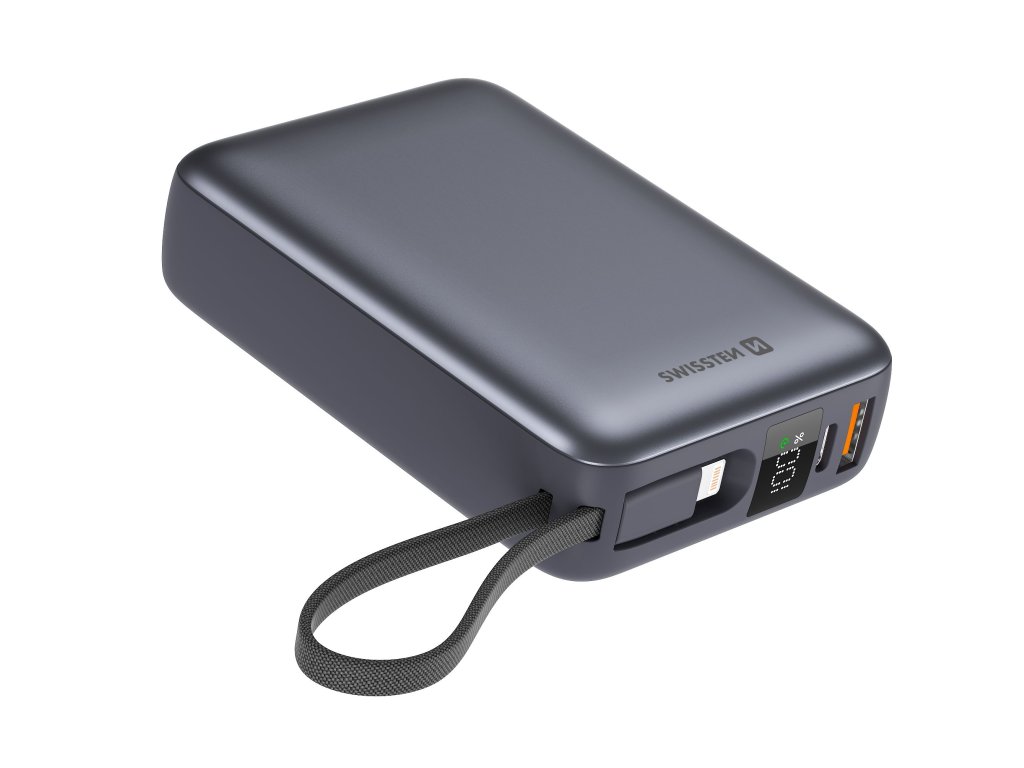 SWISSTEN EXTRA SMALL POWER BANK 20000 mAh integrovaný kabel USB-C a Lightning silver