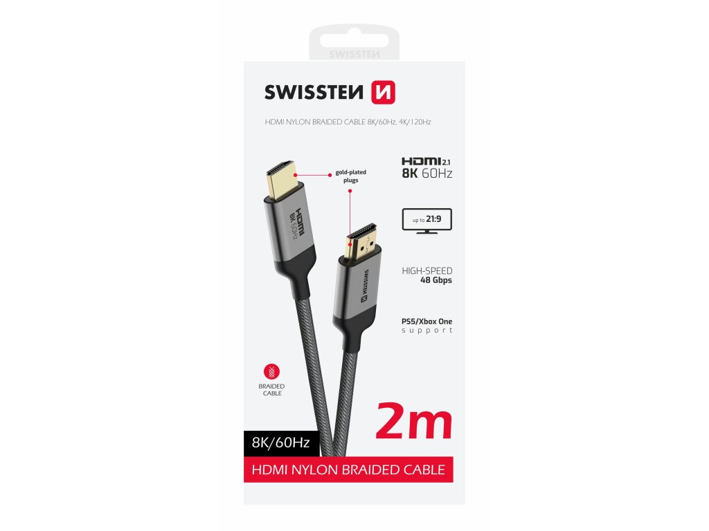 Swissten HDMI kabel nylonem opletený 8K 60Hz 2m
