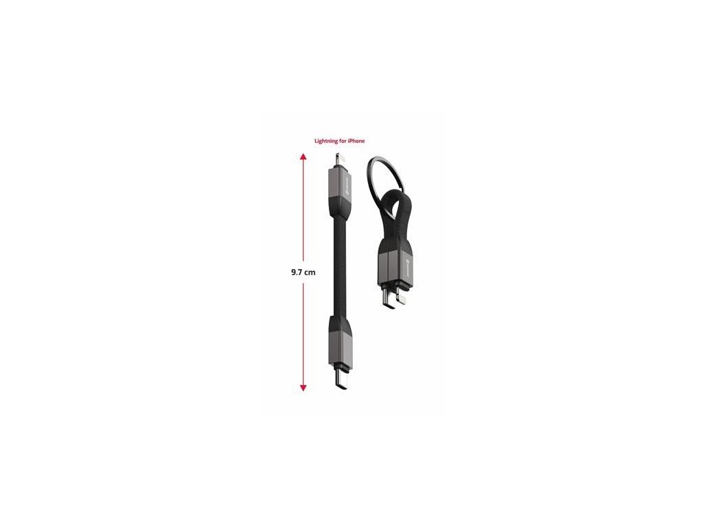 Kvalitní pletený kabel s koncovkami USB-C a Lightning, který jde připnout na klíče a mít ho vždy po ruce. Kvalitní magnetický Keychain kabel s délkou 9,7 cmVyroben z odolného textilního materiálu, což zajišťuje jeho dlouhou životnost a ochranu před opotřebením. Robustní hliníkové koncovky, zabudované magnety umožňují snadné připevnění kabelu na klíče, vytvoří stylovou smyčku.Díky kompaktní velikosti je kabel snadno přenosný a nezabere téměř žádné místo. Kompaktní design ideální na klíče nebo do kapsy.Snadné a rychlé připevnění díky magnetům.SpecifikaceKoncovky: USB-C / Lightning. Výkon: 9V DC 3A / Max. 27 WDatový přenos: 480 Mb/s. Materiál: Textílie, TPU, Hliník.Barva: černá.Baleno v krabičce se závěsem.Doplňkové parametry