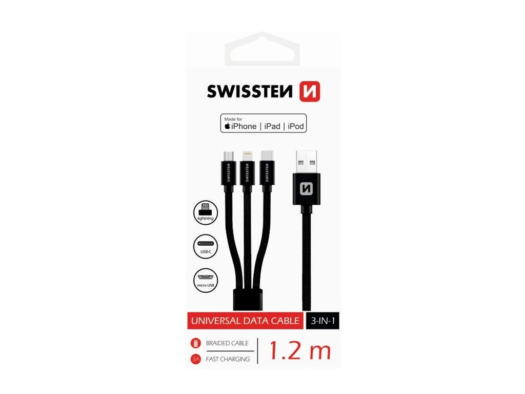 SWISSTEN kabel USB 3v1 microUSB USB-C Lightning MFI 1,2m černá