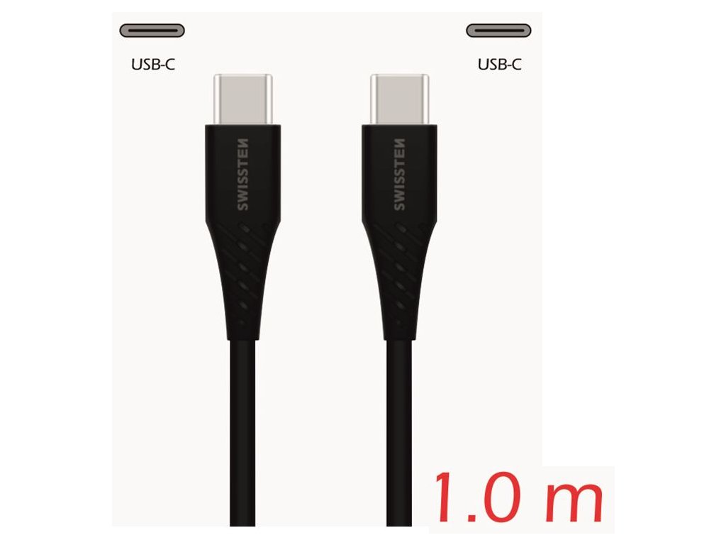 SWISSTEN kabel USB-C USB-C 1m 3A černá (vhodné do aut)