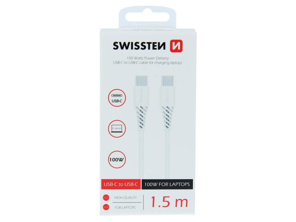 SWISSTEN kabel USB-C USB-C POWER DELIVERY 1,5m 5A 100W bílá (vhodné k laptopu)