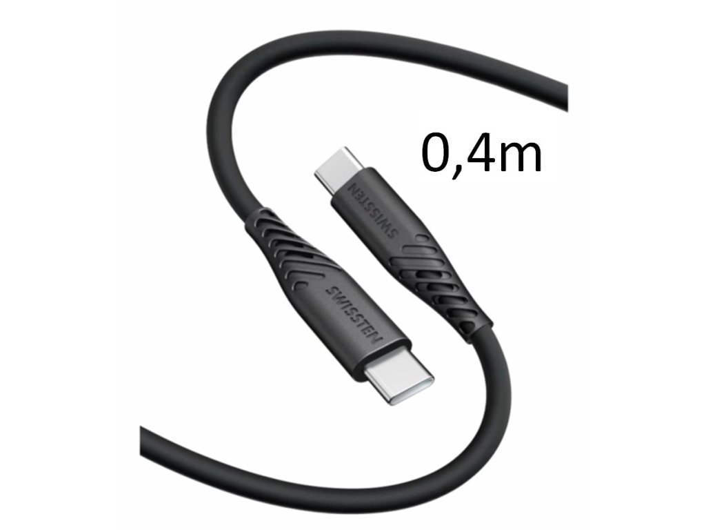 SWISSTEN kabel USB-C USB-C silikonový 0,4m 3A 60W černá