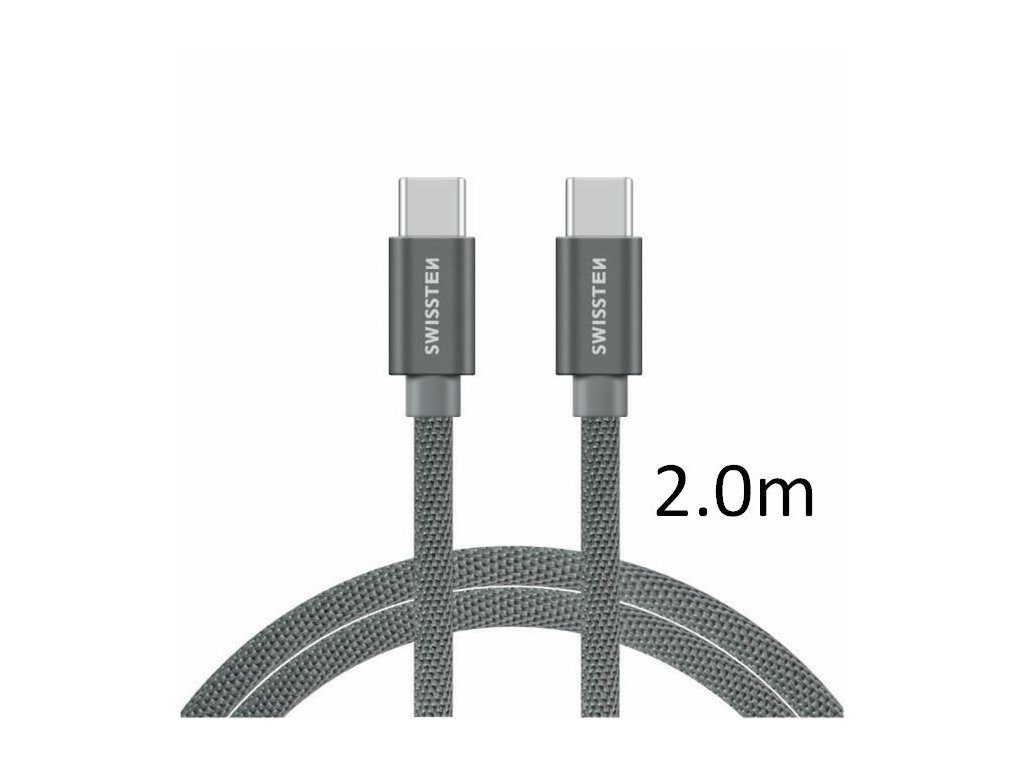 SWISSTEN kabel USB-C USB-C textilní 2m 3A stříbrná (vhodné do aut)