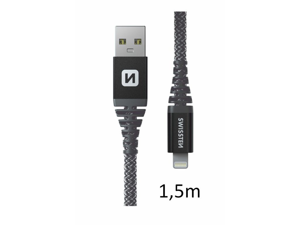 SWISSTEN kabel USB Lightning kevlarový 1,5m 3A 60W antracitová