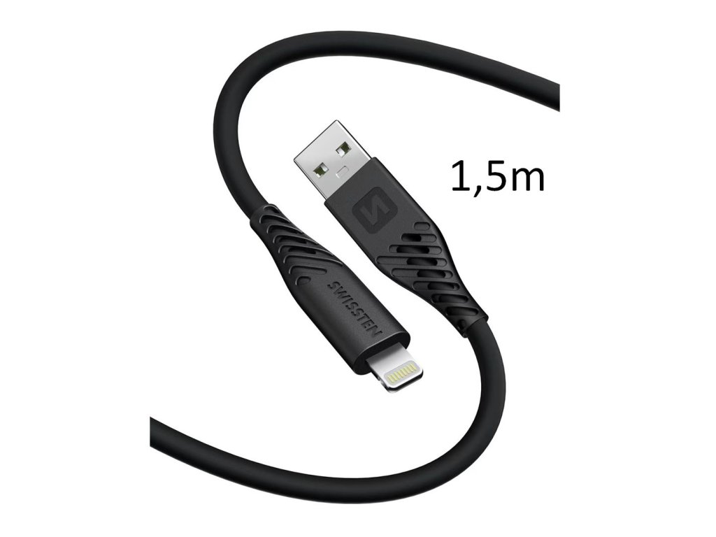 SWISSTEN kabel USB Lightning silikonový 1,5m 3A 60W černá