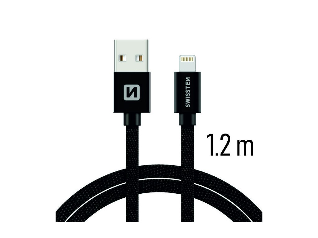 SWISSTEN kabel USB Lightning textilní 1,2m 3A černá