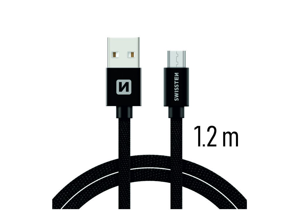 SWISSTEN kabel USB microUSB textilní 1,2m 3A černá