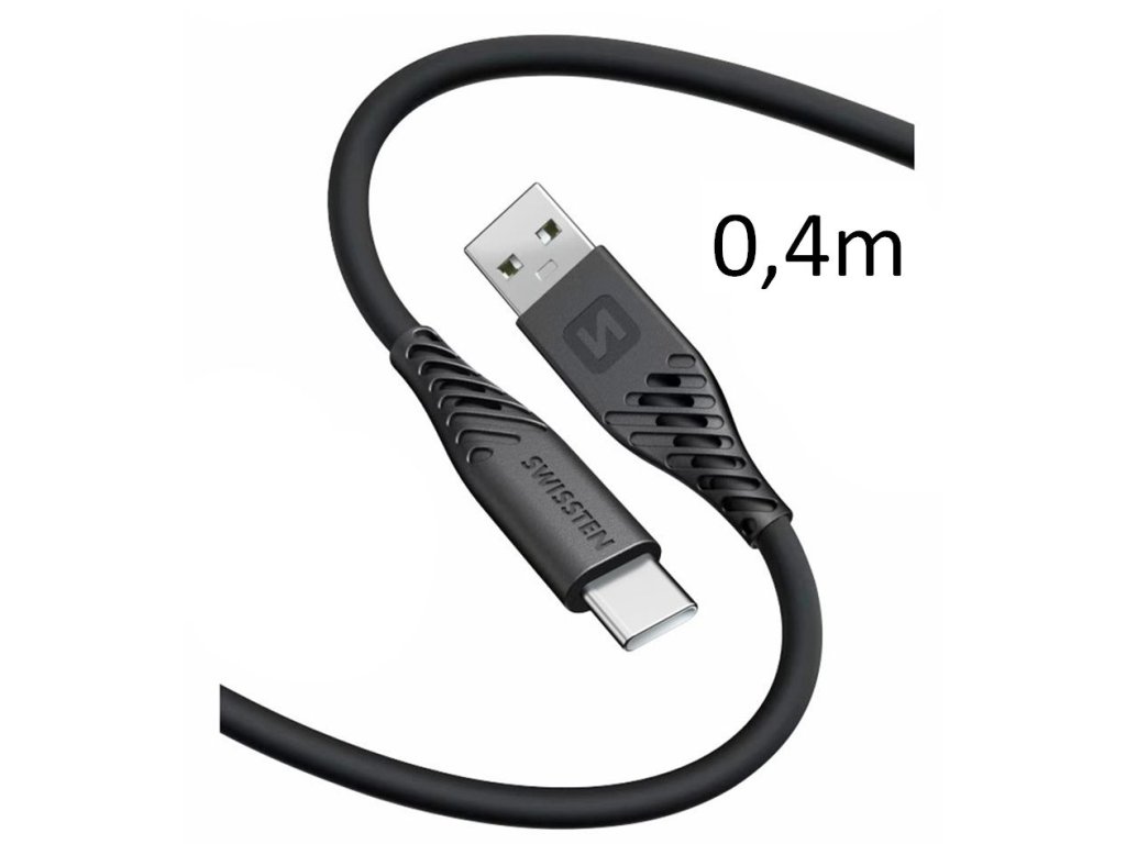 SWISSTEN kabel USB USB-C silikonový 0,4m 3A 60W černá