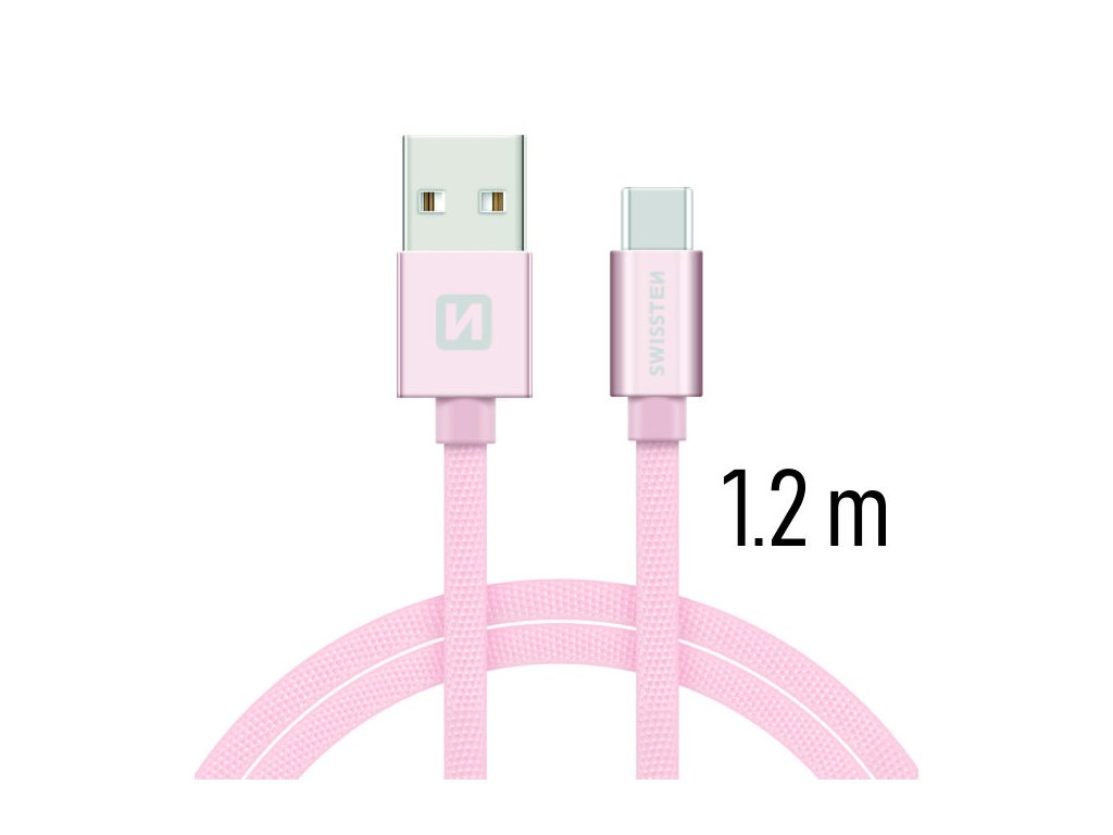SWISSTEN kabel USB USB-C textilní 1,2m 3A růžová