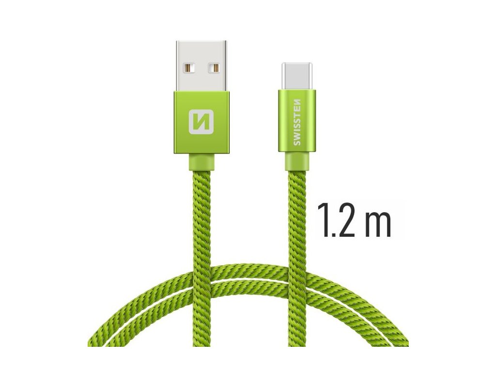 SWISSTEN kabel USB USB-C textilní 1,2m 3A zelená