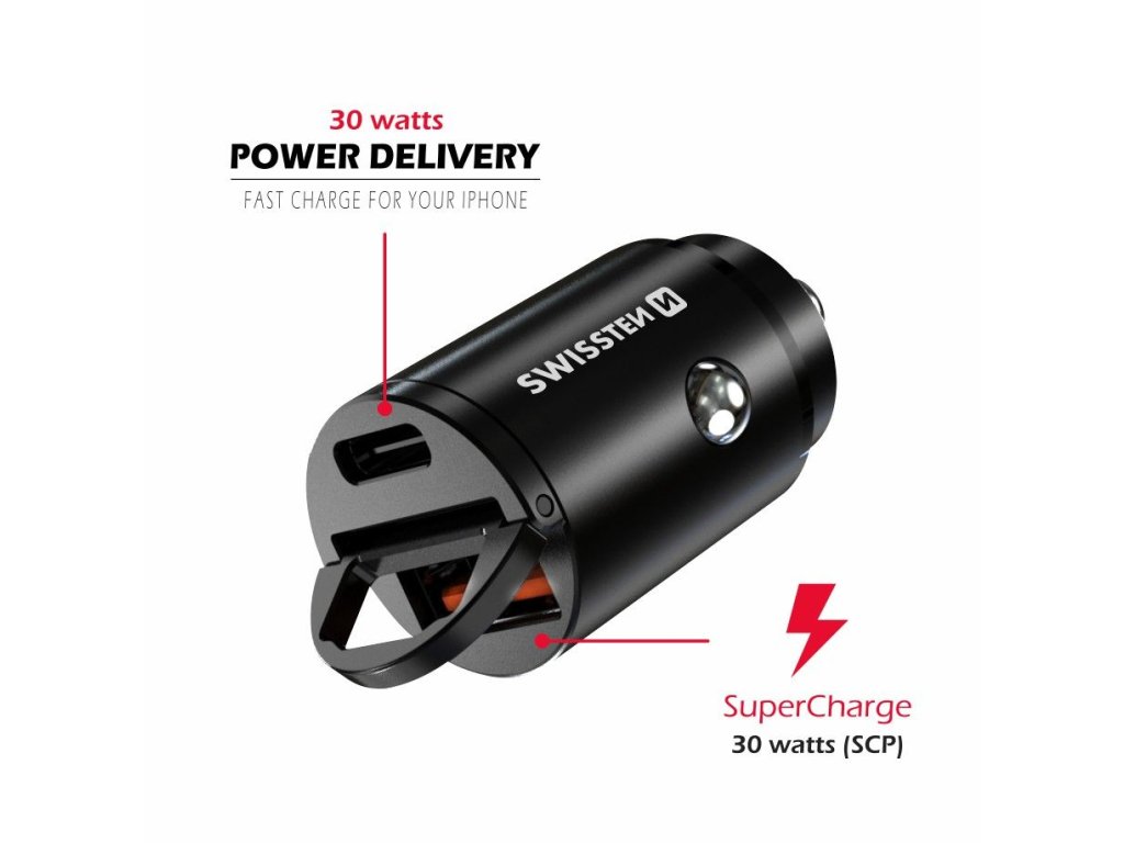 SWISSTEN nabíječ USB-C POWER DELIVERY a USB SUPER CHARGE 3.0 NANO 12V/30W černá