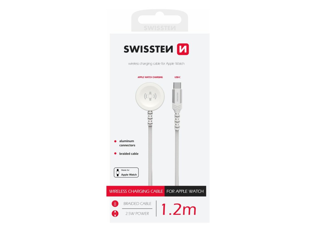 Bezdrátová nabiječka pro Apple Watch s výkonem s kabelem USB-C o délce 1,2m.Magnetický kabel pro nabíjení Apple Watch, který disponuje kovovým tělem nabíječky, splní veškerá vaše očekávání. Kabel vyniká příjemným pleteným povrchem. Vstup: 5V DC 1A, 5V DC 2.4A, 9V DC 2.22A, 12W DC 1.67A / max. 20 W. Výstup Apple Watch: 2.5 W. Balení: papírová krabička se závěsem.Doplňkové parametry