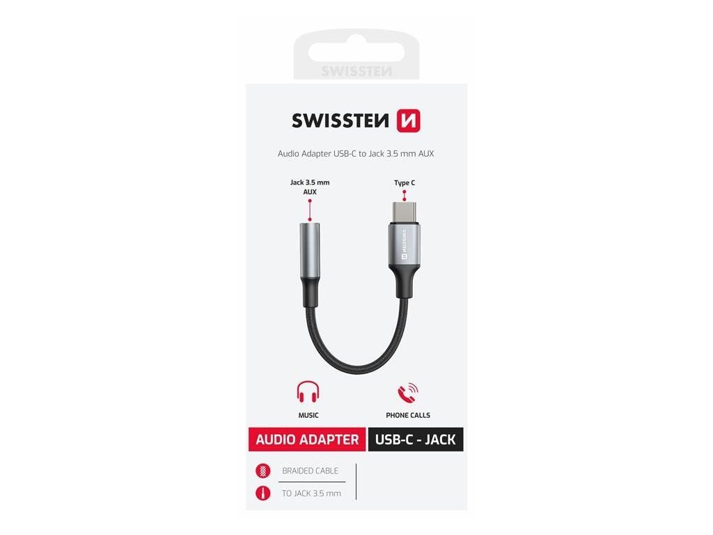 SWISSTEN redukce USB-C JACK 3,5mm textilní 0,15m černá