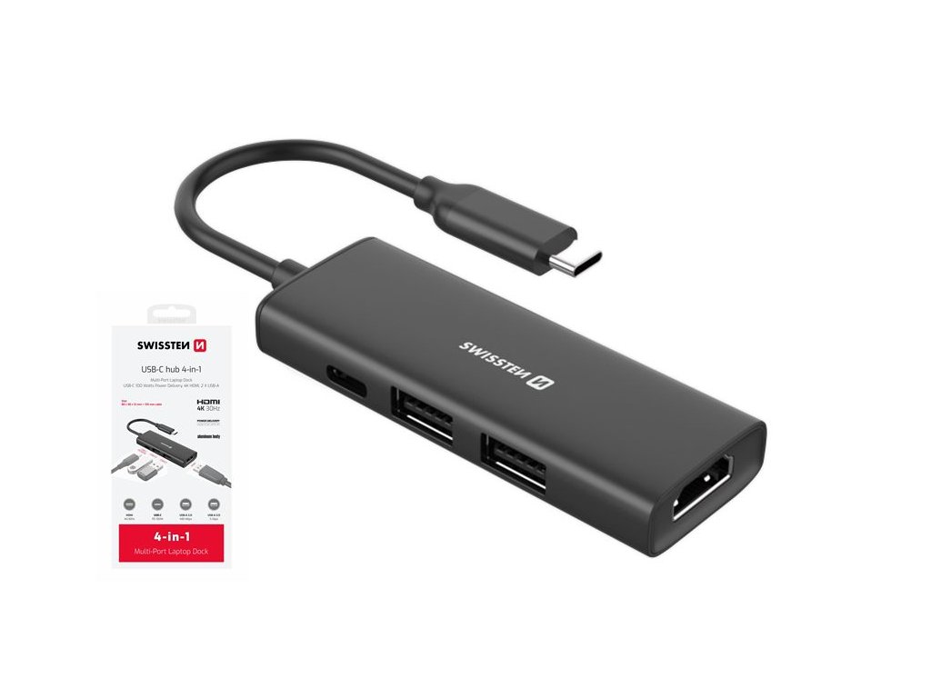 SWISSTEN USB-C HUB 4v1 USB-C 100W, HDMI 4K, 2x USB-A