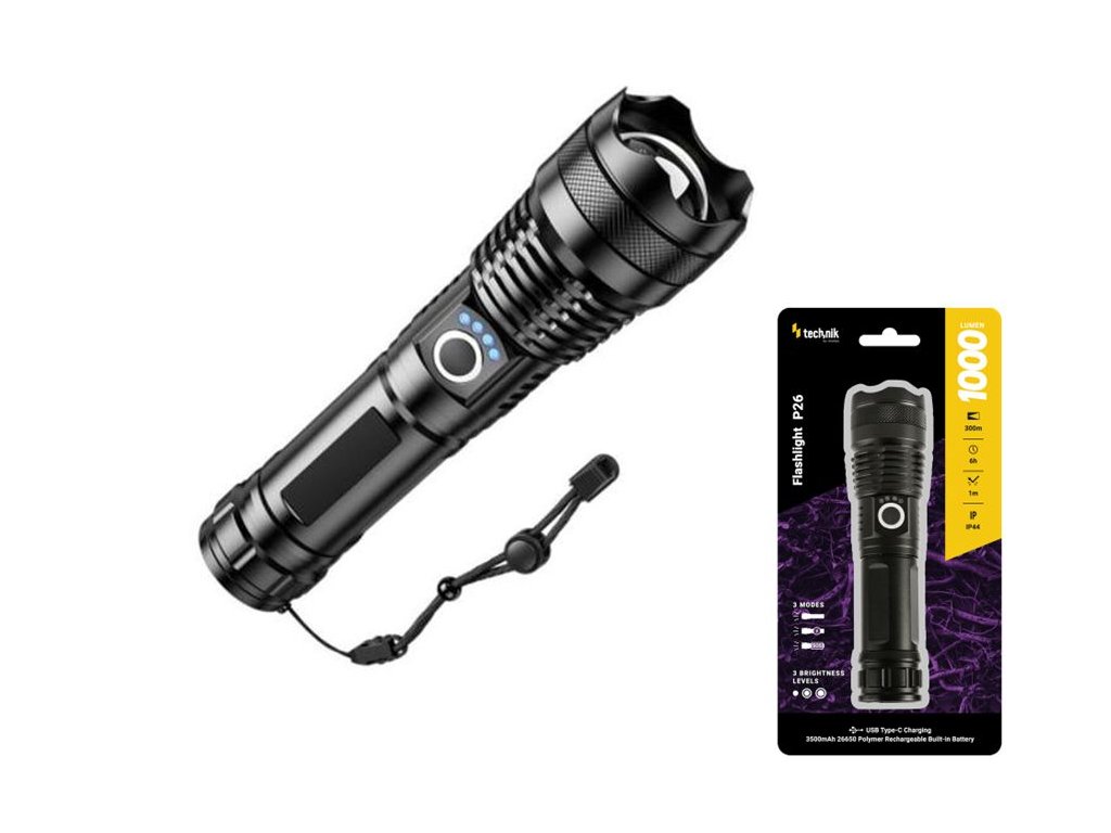 Technik Flashlight P26 nabíjecí svítilna 1000lm LED kovová ZOOM