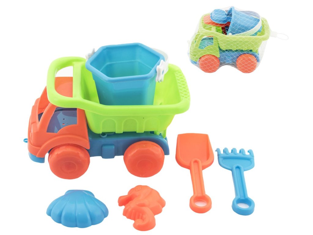 (BAL:1/40/80ks) Užijte si spoustu zábavy s tímto autíčkem na písek, které vaše děti zabaví na dlouhé hodiny. S autíčkem je možné převážet náklad z jedné strany pískoviště na druhou. Na volný chod.Sada spolu s autíčkem obsahuje také kbelíček, mini lopatku, mini hrabičky a 2 bábovky.Rozměry: 16 x 13 x 10 cm.Materiál: plast. Barvy: dvě barvevná provedení.Vhodné pro děti od 3 let. Balení: v síťce.Doplňkové parametry